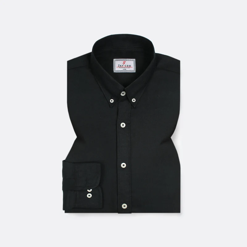100% Cotton Black Textured Oxford Button-Down Shirt