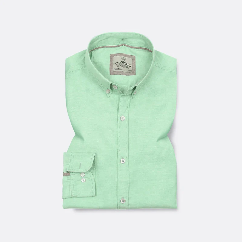 100% Cotton Double Winter Green Mint Button-Down Shirt